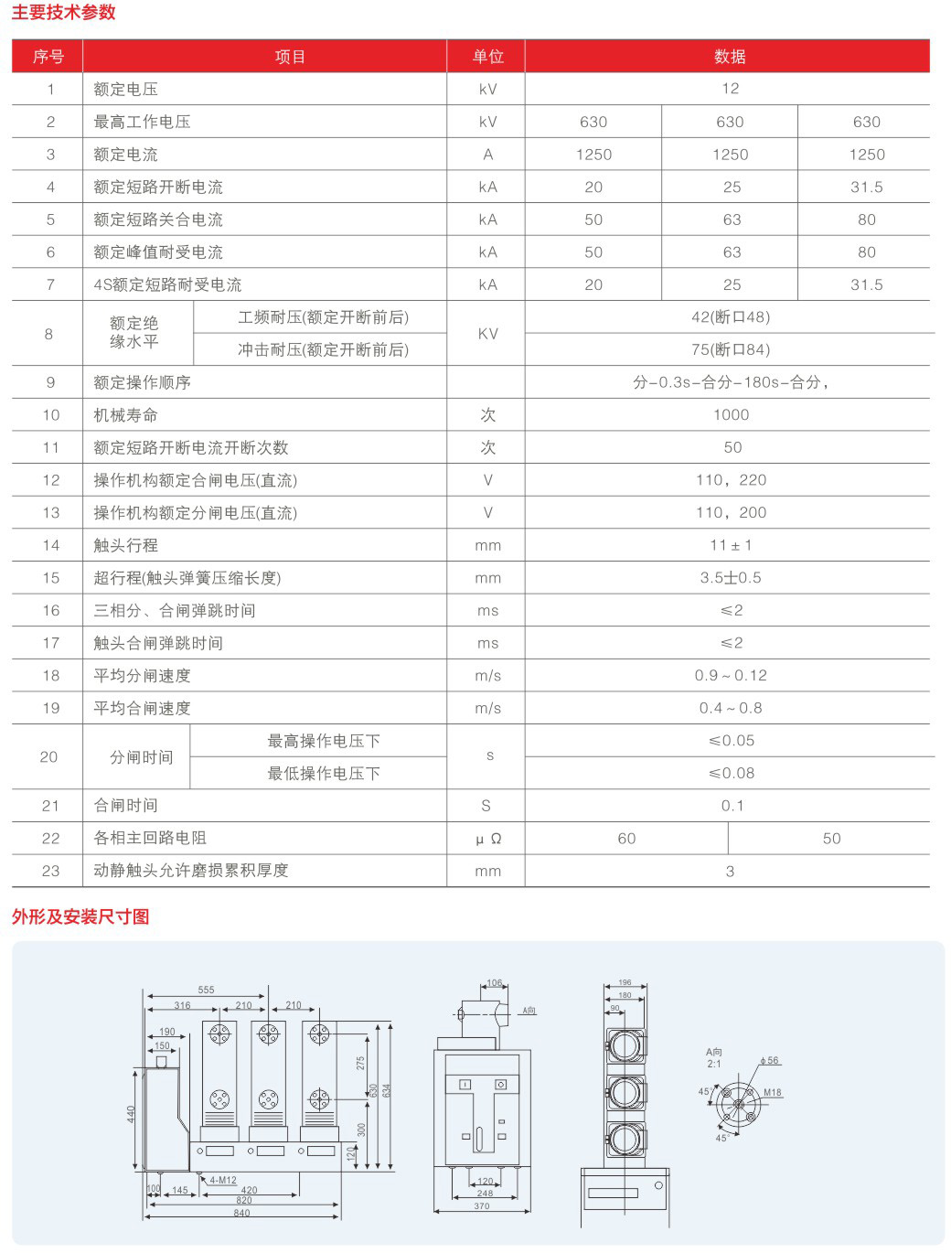 VS1(ZN63A)-12 户内侧装式真空断路器
